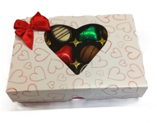 Window Heart Box with your choice of 12 chocolates (170g). Best before: 6-8 weeks from dispatch. P & P is added at the checkout.